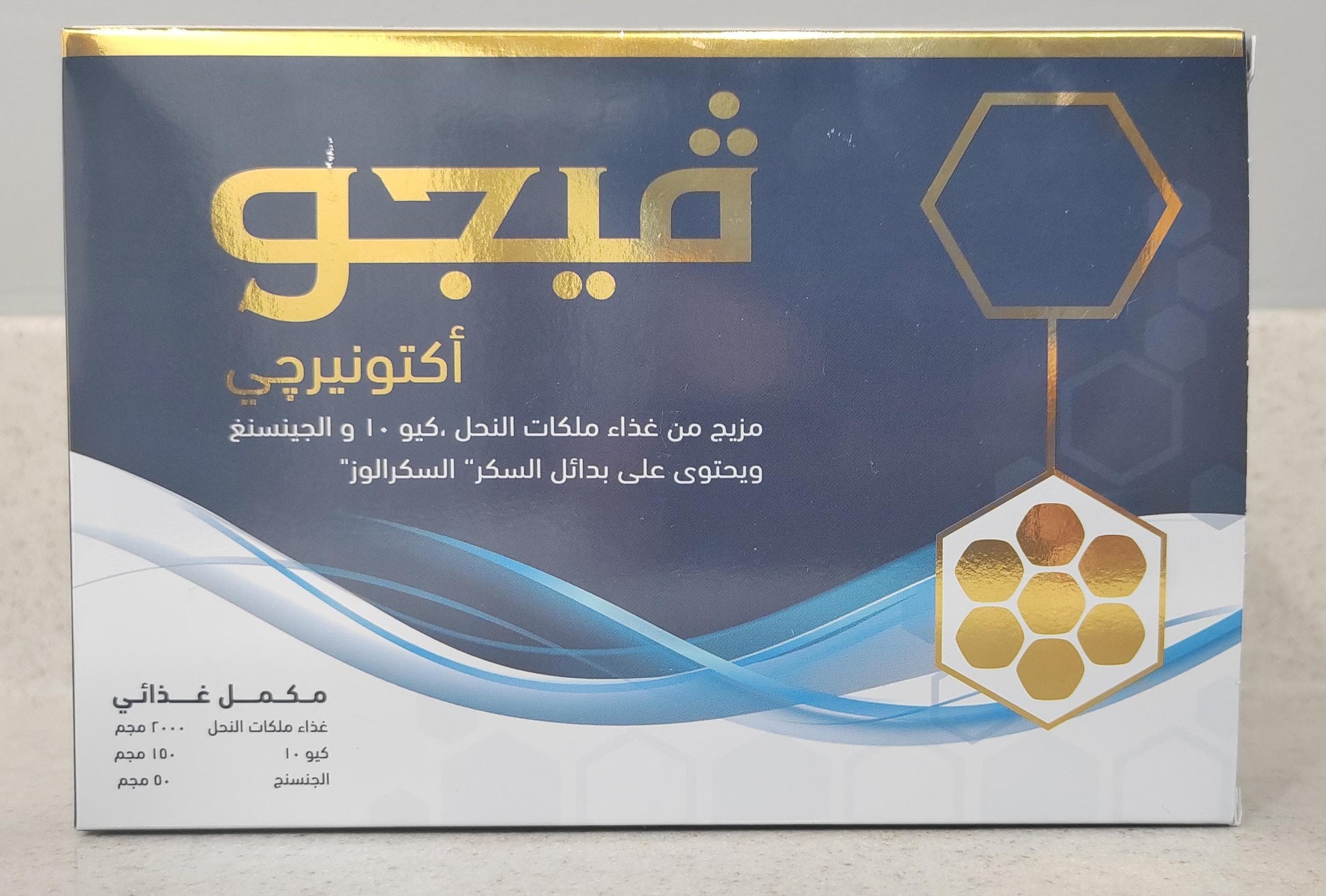 ڤيجو مكمل غذائي مزيج من غذاء ملكات النحل, كيو 10 والجينسنغ ويحتوي على بدائل السكر( السكرالوز )